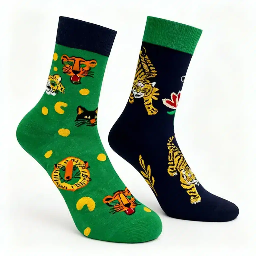 Tohle nejsou náhodné „neparové“ ponožky. Jsou to malé umělecké kousky, kde každý pár funguje jako dynamické duo – doplňují se, baví a vypráví svůj vlastní příběh.