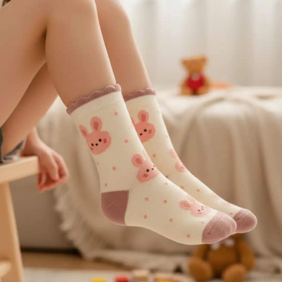 Tahle sada 10 párů je tvoje ranní evakuace ze stresu: králíčci s jahodami, včelky, třešně… každý pár je malý důvod, aby si tvoje dcera VYBRALA SAMA a usmála se.